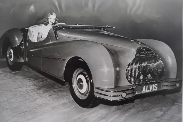 The Alvis TB 14 was a British two-seater open car built by Alvis cars in 1950. It was based on the running gear of the TA 14 saloon. Alvis hired AP Metalcraft, a coachbuilder in Coventry, to create the two-door open vehicle body for the TA 14 chassis. The automobile had dramatically cut-away door tops on the rear-hinged doors, as well as very long sweeping front wings and a fold-down windscreen. The radiator grille was a contentious item since it was pear-shaped, with bottom side bulges covering the headlights, which were thus a long way from the side of the automobile. The front sidelights were positioned in the bumpers. There were variants with both right and left-hand-drive.