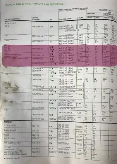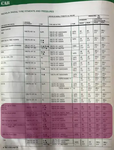 1978 Michelin BMW 6 Series Fitment Guide