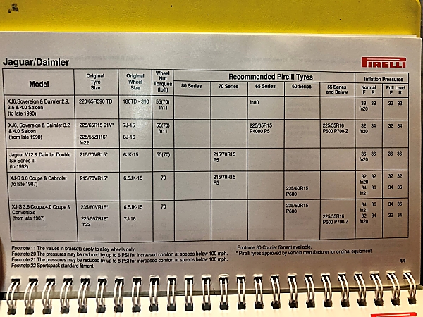 Jaguar XJ12 Tyre Pressures